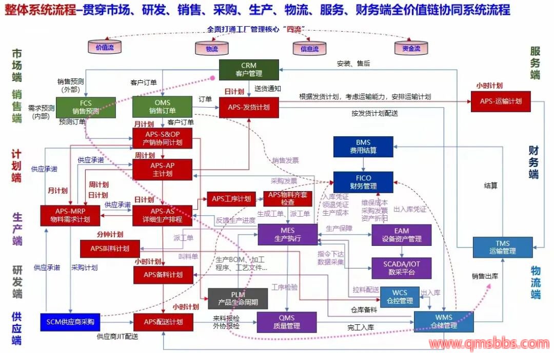 3、生产运营平台-整体运营架构:企业市场,销售,研发,计划,生产,采购,人事,项目,工作流,财务核算系统一体化集成