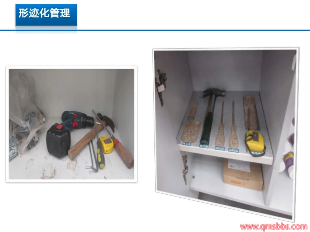 位置标识:用划线、标签、影子板(工具形迹管理)标明物品应该放在哪里。