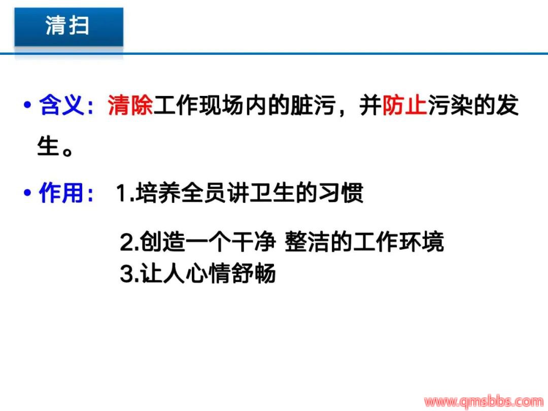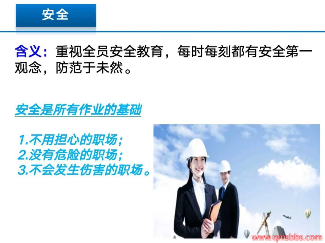 安全第一:5S的最终目的是为了安全。一个整洁有序的工作环境,能极大地减少滑倒、绊倒、误操作等安全事故。
