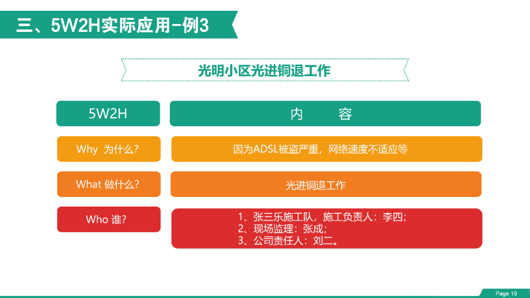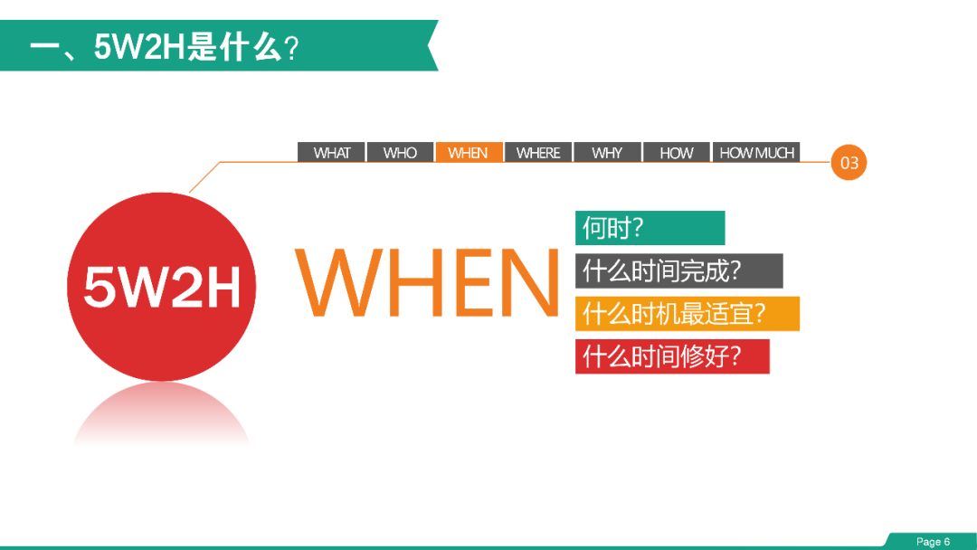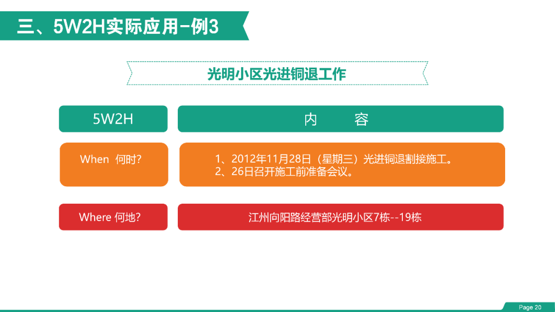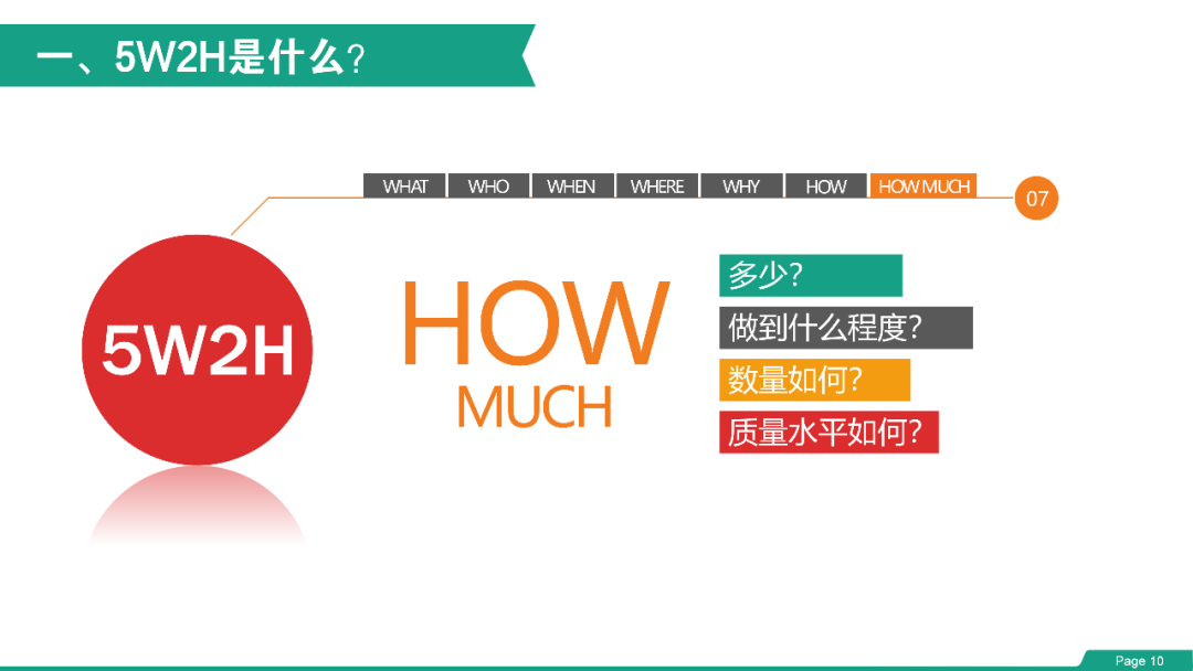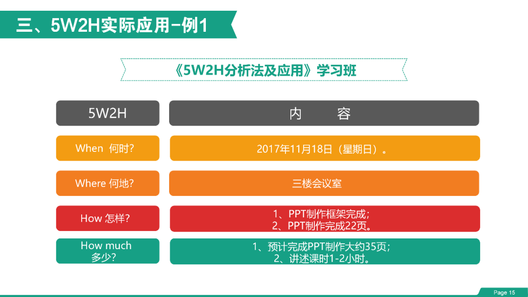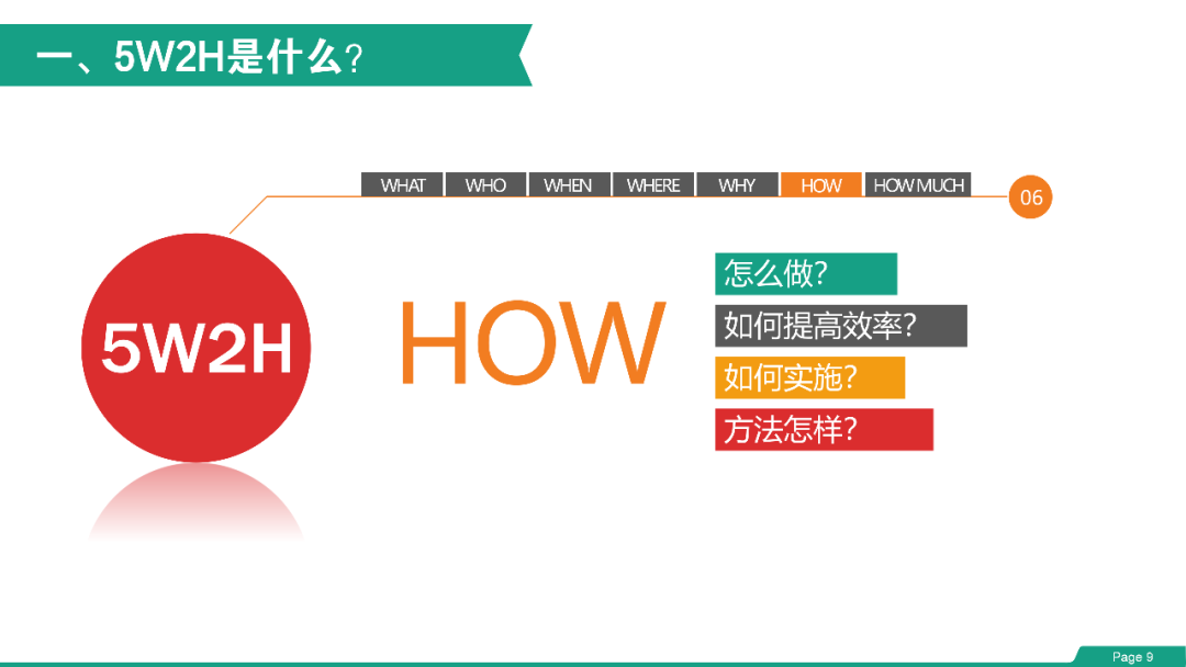 协同工具:可结合SWOT、PDCA等工具,例如用5W2H制定计划后,用PDCA循环执行与改进
