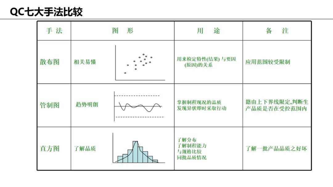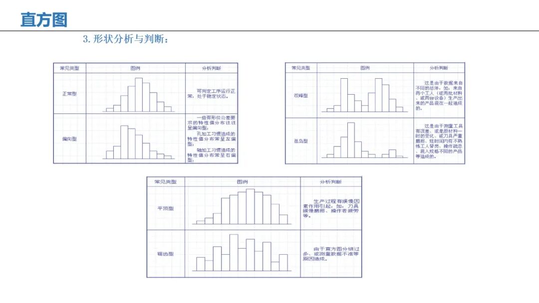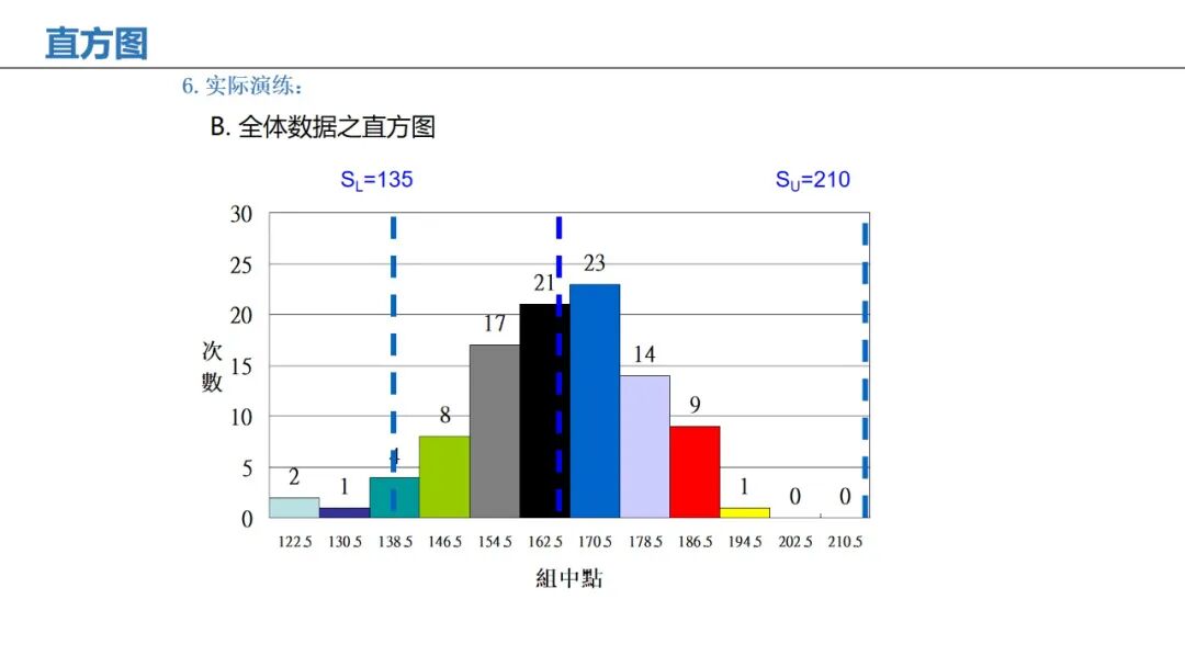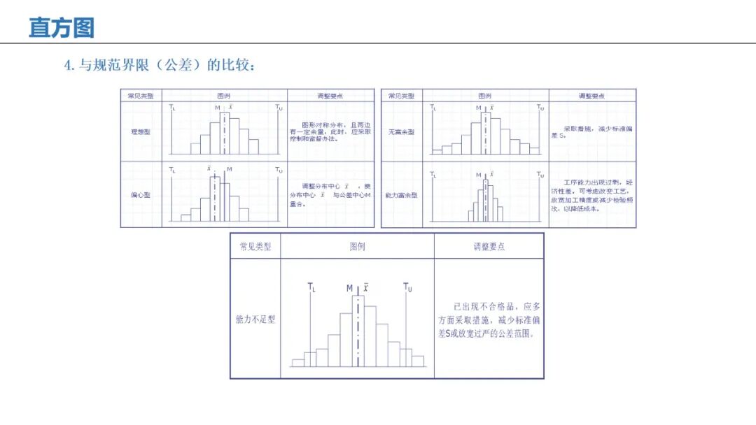 应用:显示数据分布情况,判断过程稳定性和规格符合度。