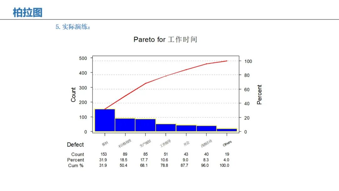 应用:遵循“二八法则”,优先解决导致80%问题的关键少数因素。
