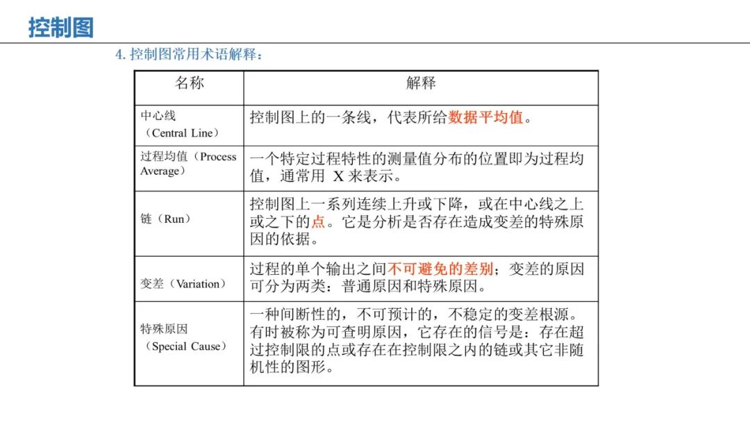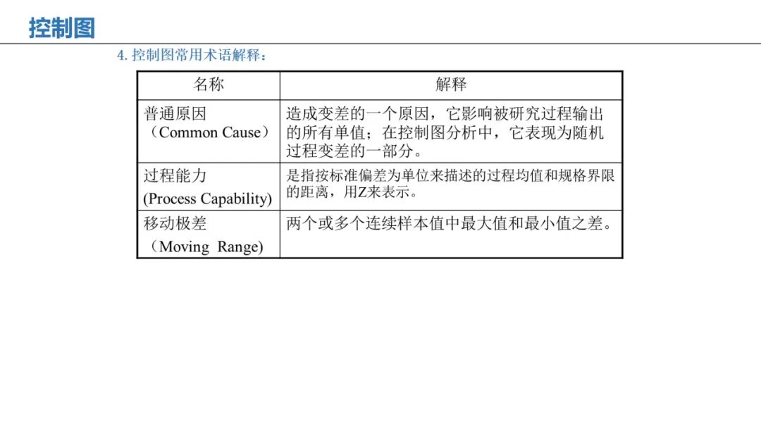 应用:监控过程是否处于统计控制状态,区分共性原因与特殊原因变异。