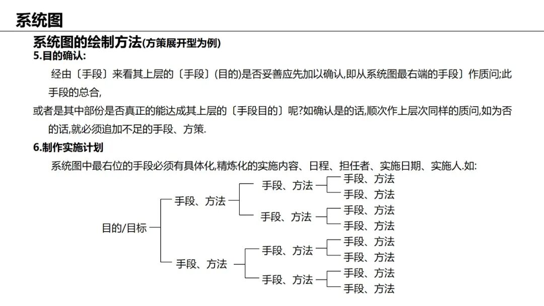 应用:将目标逐层分解为可执行的具体措施,用于方案展开。