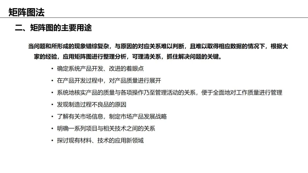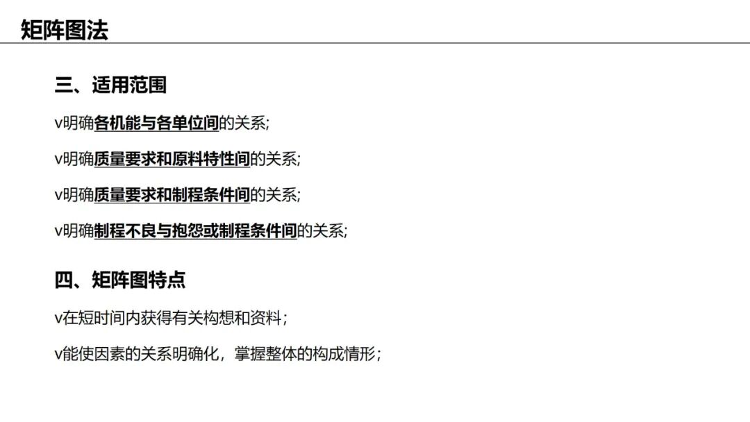 应用:理清复杂问题中多个因素之间的因果关系,适用于跨部门协作。