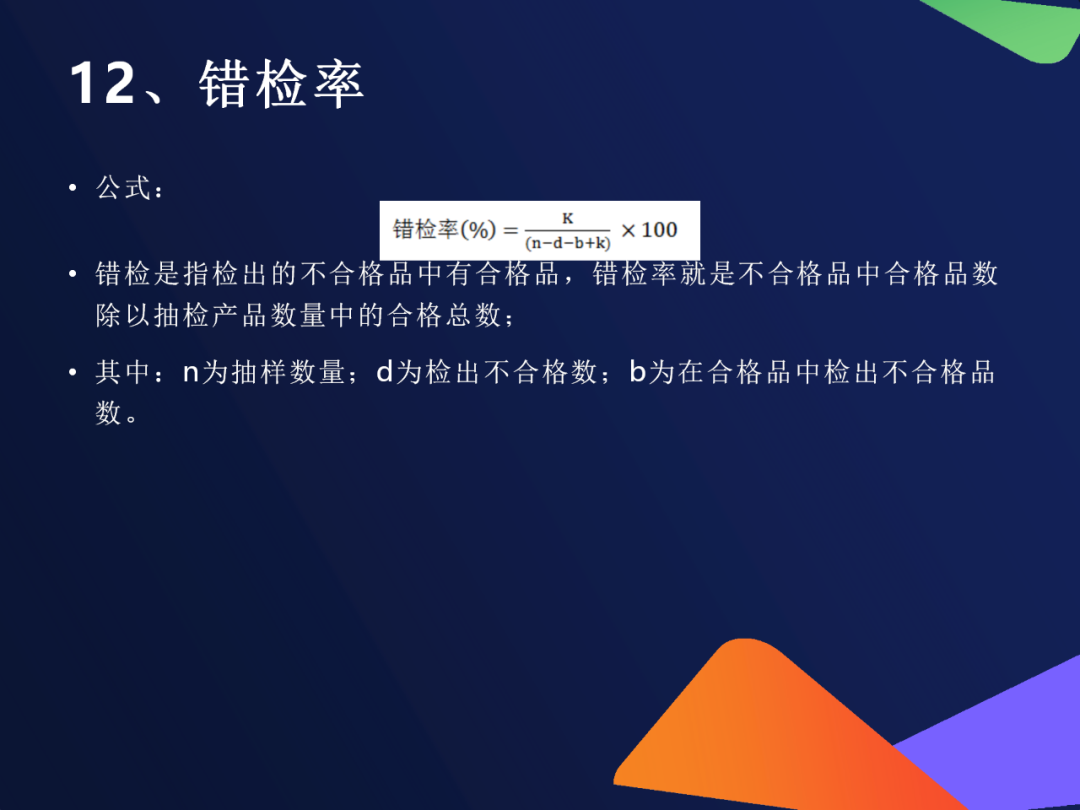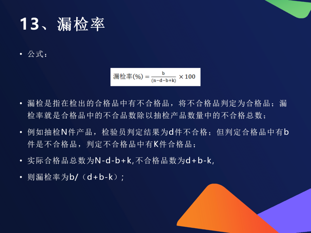 ⚠️ 质检不是万能的!也可能“误伤好人”或“放过坏人” 指标公式含义错检率b ÷(抽检合格总数)把好东西当成坏的(冤枉了)漏检率b ÷(实际不合格总数)把坏东西当成好的(放跑了)